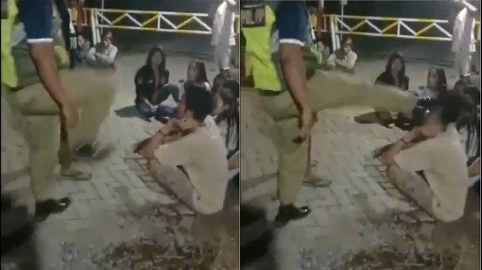 Dalam video itu menggambarkan anggota Satpol PP tendang pemuda bagian wajahnya.