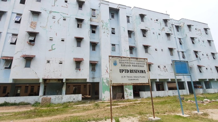 Rusunawa Adiarsa di Jalan Dr Taruno Adiarsa Pusaka, Karawang Barat, Kabupaten Karawang, Jawa Barat kondisinya memprihatinkan.