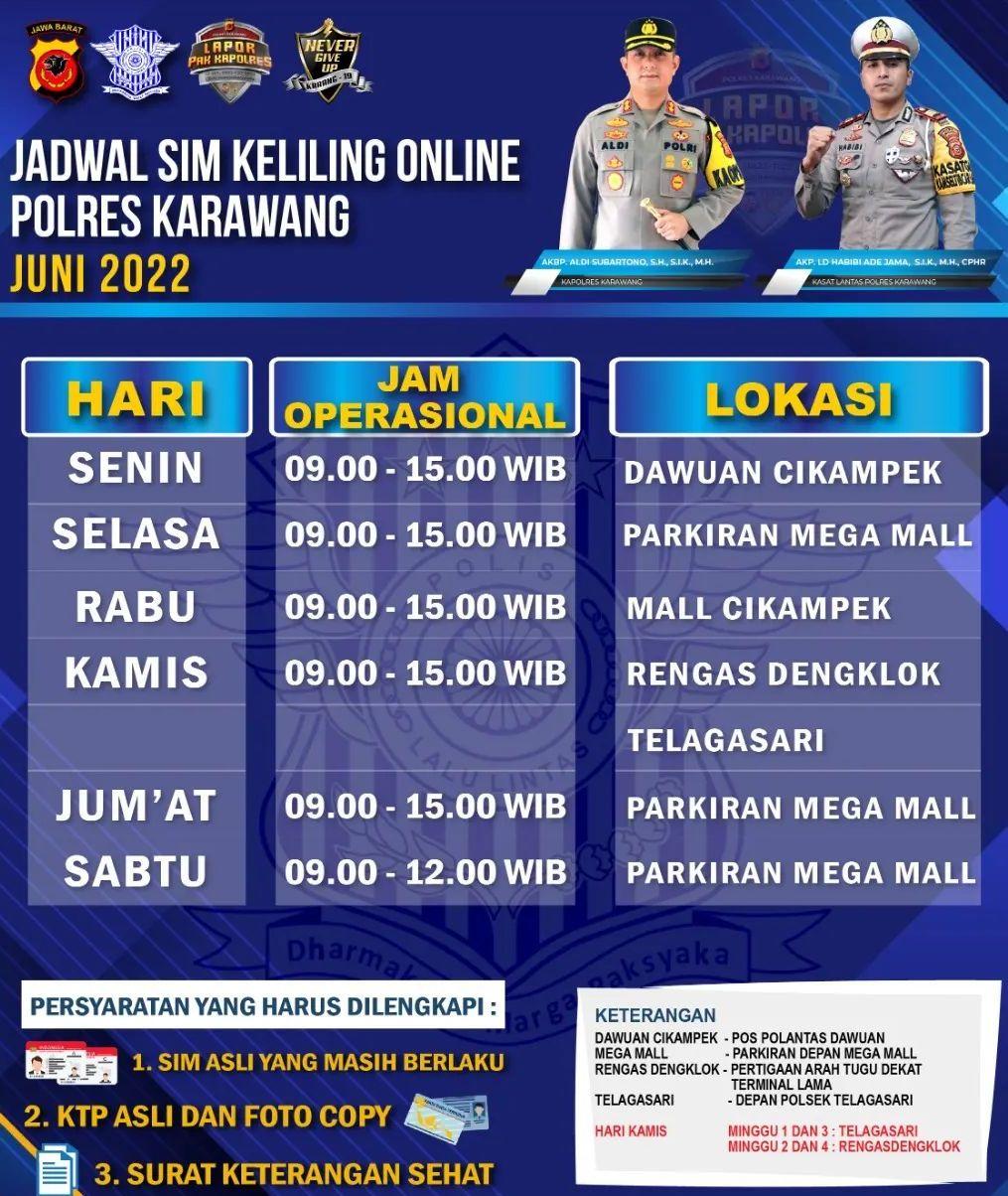 Berikut Jadwal SIM Keliling Polres Karawang selama Juni 2022 :