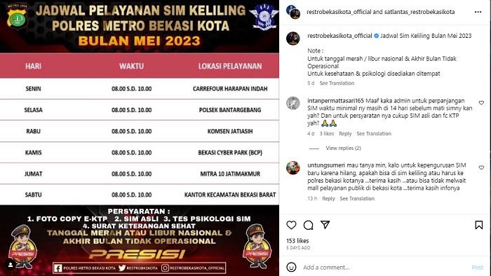 SIM Keliling Kota Bekasi Jumat 12 Mei 2023 di Mitra 10 Jatimakmur hingga pukul 10.00