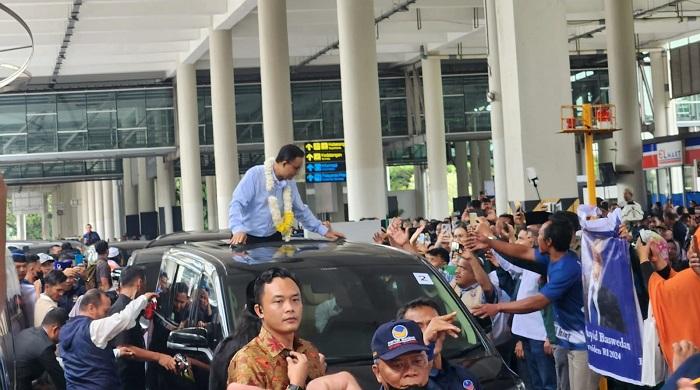 Kampanye di Sumut, Anies Baswedan Disambut Riuh Simpatisan di Bandara Kualanamu