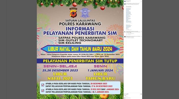 Layanan SIM Polres Karawang Diliburkan saat Libur Natal 2023 dan Tahun Baru 2024, Cek Ketentuannya