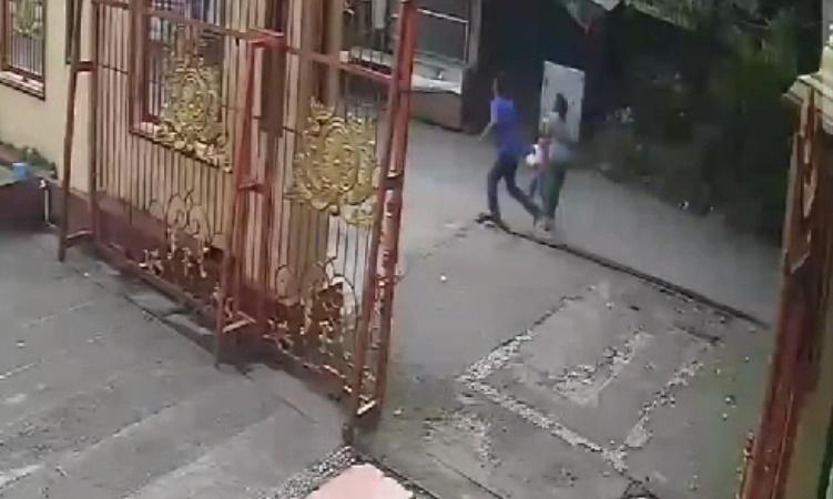 Dari rekaman CCTV, nampak korban begal payudara tersebut sedang berjalan bersama anaknya di lokasi yang sepi.