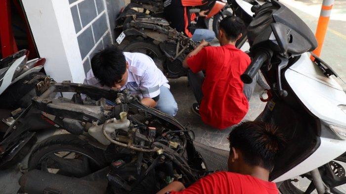 Para siswa ini mengubah mesin motor dan merangkai teknologi motor listrik.
