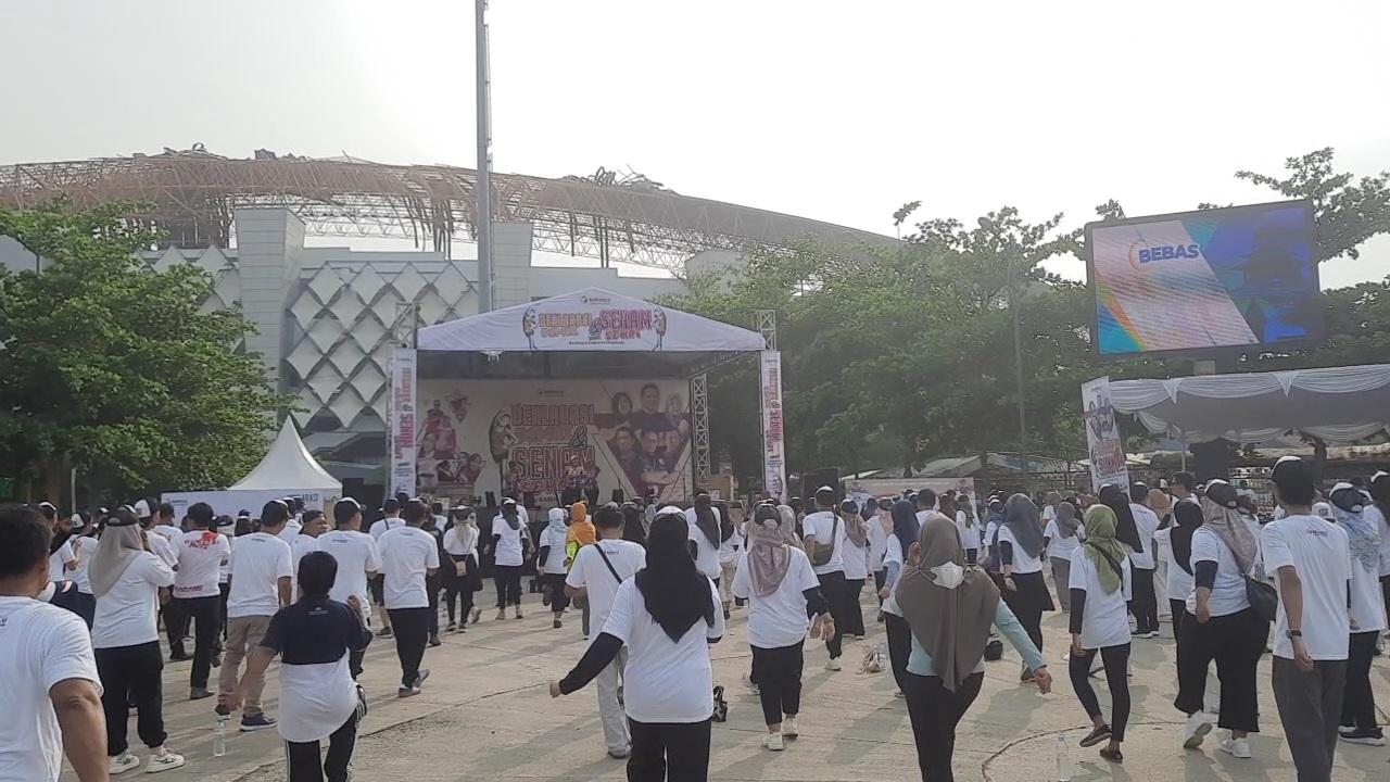 Mereka terlihat berbaris rapih menghadap panggung sembari mengikuti gerakan senam yang dipadu oleh instruktur dengan penuh semangat.