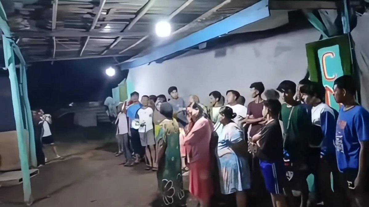 Dalam video yang diunggah di akun facebook @wahidthengil terlihat rombongan warga didominasi ibu-ibu mendatang lokasi sanggar Jaipong tersebut.