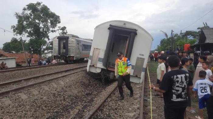 Kereta tersebut anjlok dan keluar dari rel di wilayah Kedunggedeh, Kecamatan Kedungwaringin.