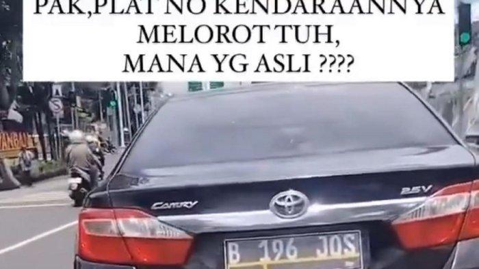 Dalam video amatir yang beredar di media sosial, pelat nomor ganda mobil dinas di belakang mobil hitam itu tampak melorot.