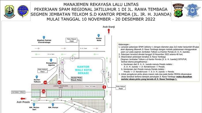 Rekayasa Lalin Jalan Rawa Tembaga Kota Bekasi Hingga 20 Desember 2022, Berikut Skema Pengalihannya